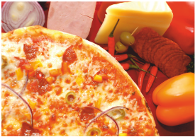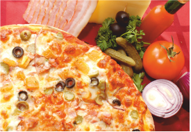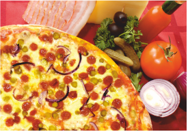 Сыр "Моцарелла", соус, лук, "Пепперони", болгарский перец,маслины, перец "Халапенью".