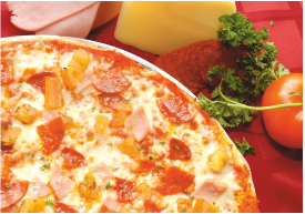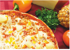 Сыр "Моцарелла", болгарский перец, куриное филе, кусочки ананаса, томаты.