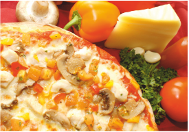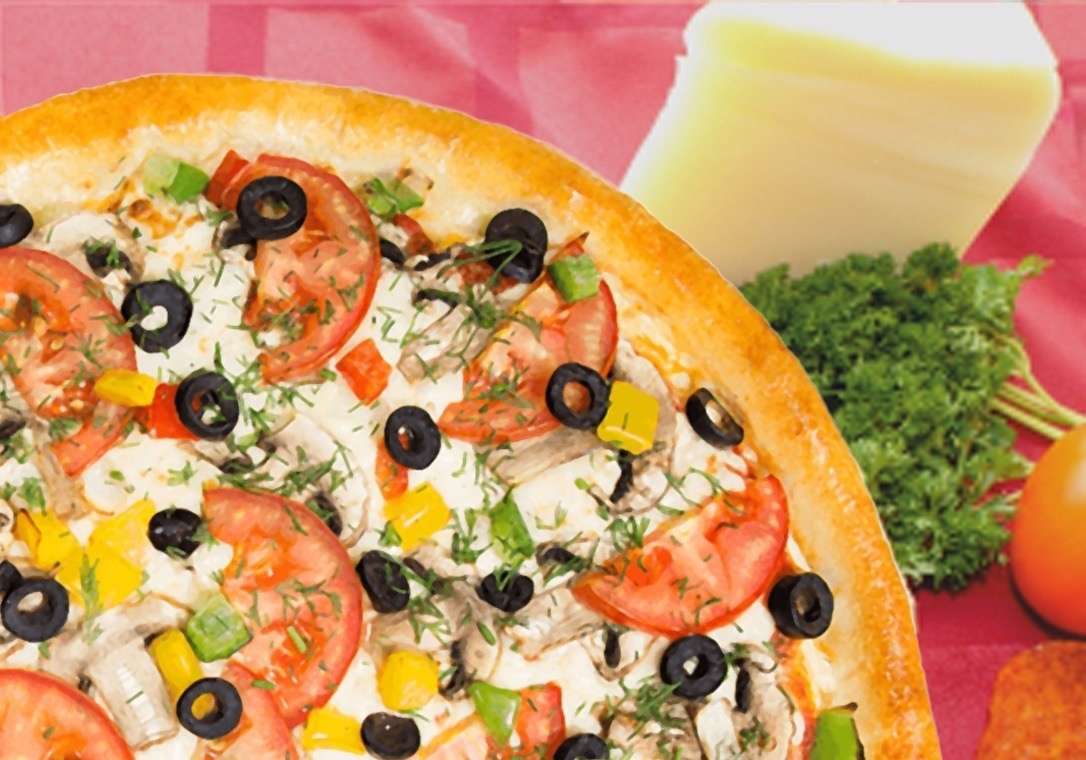 Сыр "Моцарелла", болгарский перец, грибы, маслины, томаты.