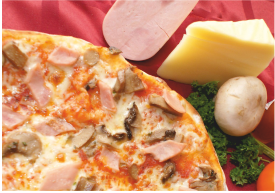 Сыр "Моцарелла",соус,грибы, ветчина, томаты.