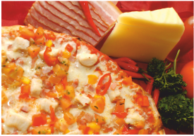 Сыр "Моцарелла",соус, ветчина, бекон ,салями, томаты.