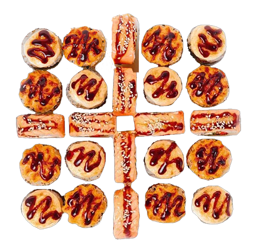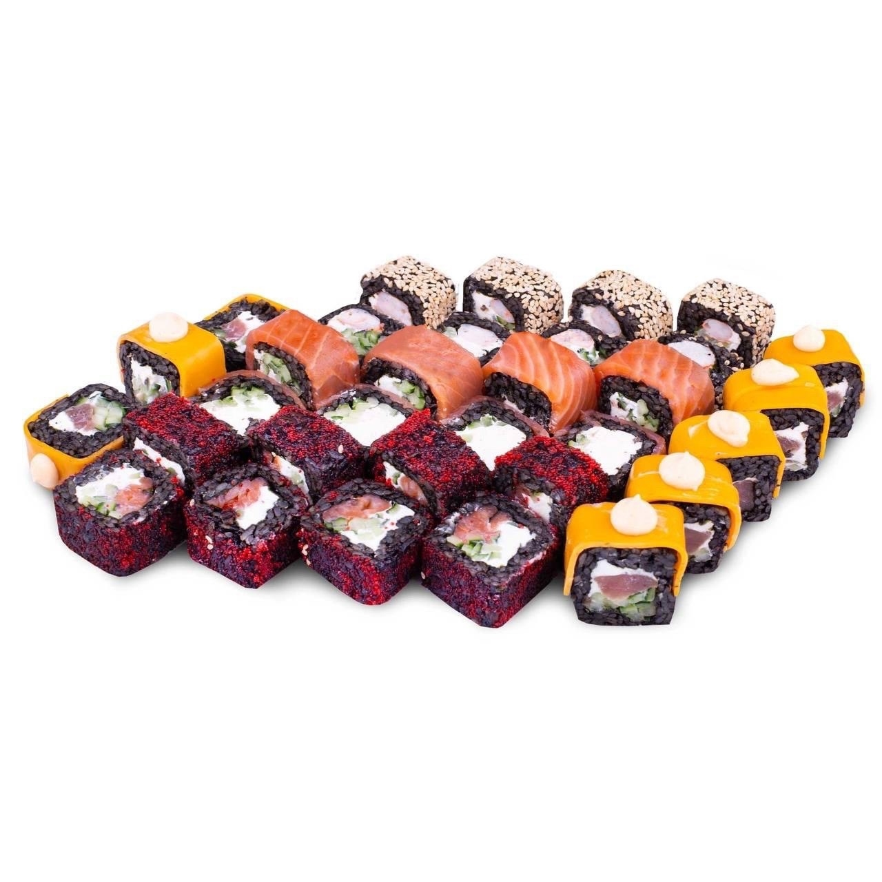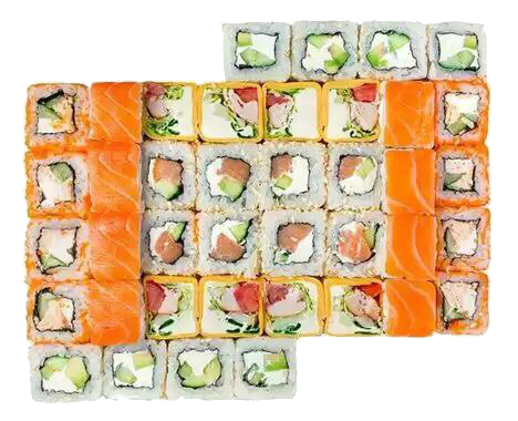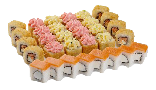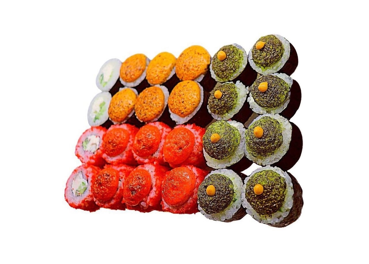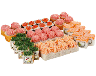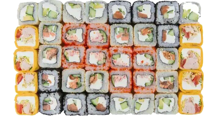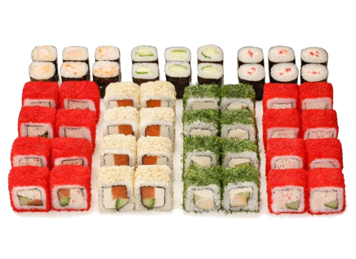 "Филадельфия", "Канадский", "Конеко", 2 "Классических ролла с лососем", "Классический ролл с огурцом", "Овощной ролл".