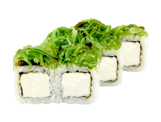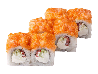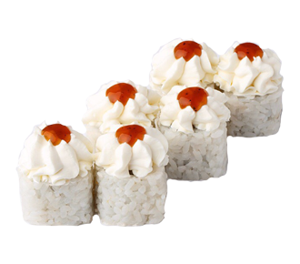 сливочный сыр,окунь,тобико,зелёный лук,сырный соус,унаги соус